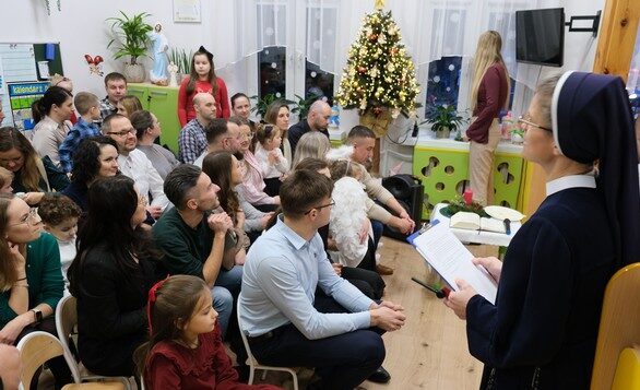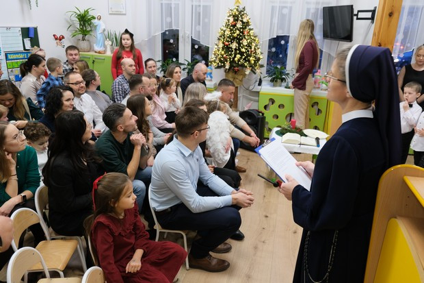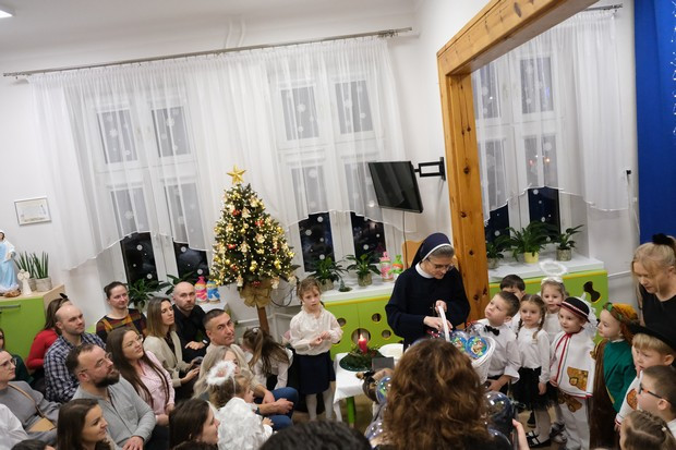 Zapraszając rodziców do Ochronki na nasze spotkanie świąteczne, dajemy okazję do tego, by wspólnie celebrować radość zbliżających się Świąt Bożego Narodzenia. W miłej, rodzinnej i bardzo świątecznej atmosferze spędzaliśmy chwile przy Świętej Rodzinie, w rolę której wcielili się nasi mali artyści. Piękny i wzruszający czas, radość udzielała się wszystkim, a uroczy występ Maluszków chwytał za serce.