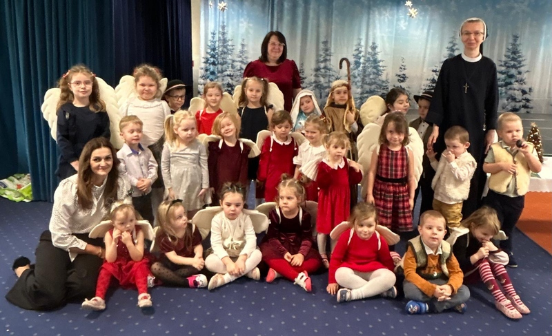 Tuż przed świąteczną przerwą, w naszym przedszkolu odbyło się wyjątkowe, wigilijne spotkanie. Starszaki przygotowały piękne życzenia dla wszystkich dzieci, sióstr i pracowników, a wspólne dzielenie się opłatkiem i śpiew kolęd wprowadziły wszystkich w prawdziwie świąteczny nastrój.
