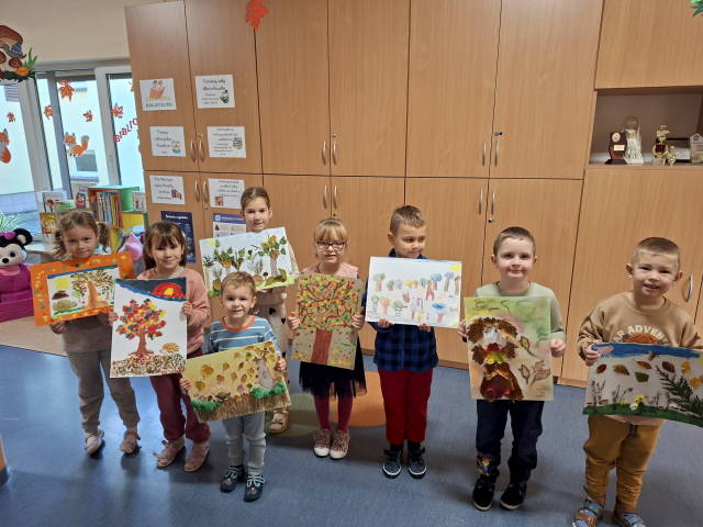Gostyński Ośrodek Kultury „Hutnik” zaprosił  dzieci i młodzież do udziału w konkursie plastycznym pt. „Zatrzymać jesień… w krajobrazie”. Celem tego konkursu jest rozwijanie wyobraźni i aktywności twórczej dzieci oraz promocja ich młodych talentów, a także uwrażliwienie na piękno przyrody. W naszej Ochronce znalazły się odważne i chętne przedszkolaki, by zaprezentować swe zdolności. Dzieci wykonały przepiękne prace plastyczne. Wszystkich razem było 10. Dziękujemy Rodzicom za pomoc.