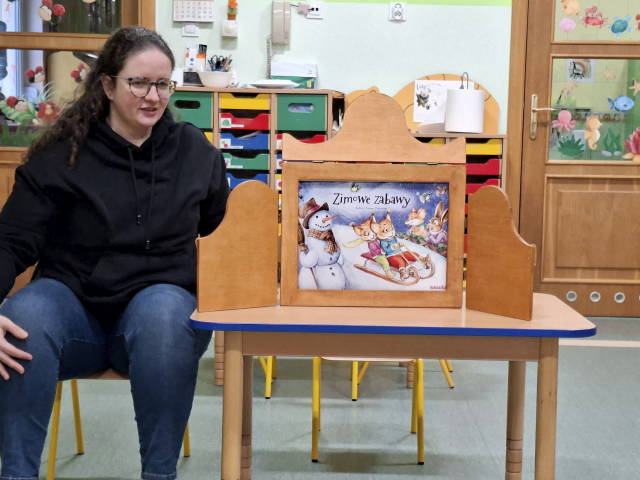 Dzisiaj podczas porannych zajęć dzieci uczestniczyły w teatrzyku kamishibai pt. „Zimowe zabawy”, który zaprezentowała nam pani Ania z Pedagogicznej Biblioteki w Gostyniu. Barwne ilustracje i ciekawa opowieść wprowadziły wszystkich w zimowy nastrój. Dzieci wzbogaciły swoje wiadomości n/t bezpiecznych zabaw na śniegu. Teatrzyk rozbudził wyobraźnię dzieci, rozwijał umiejętność słuchania i sprawił wiele radości. Podsumowaniem zajęć była praca plastyczna- zimowe drzewo oraz zimowa zabawa na śniegu, którą nasze przedszkolaki wspaniale wykonały. Serdecznie dziękujemy pani Ani, było super!