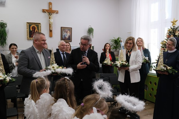 Okoliczność zbliżających się Świąt Bożego Narodzenia jest okazją do wyrażania świątecznych życzeń i słów pamięci oraz wdzięczności. W dniu 19. grudnia odbyło się w naszej Ochronce przemiłe spotkanie z zaproszonymi Gośćmi, wśród których byli między innymi przedstawiciele władz lokalnych z Panem Burmistrzem Kazimierzem Moskalem na czele, Podkarpacka Kurator Oświaty – pani Dorota Nowak-Maluchnik, Proboszcz Parafii Przemienienia Pańskiego w Ropczycach ks. Ryszard Polański, Przełożona Prowincji Tarnowskiej – s. Urszula Kowal, przedstawiciele Rady Rodziców oraz inni zacni Goście.