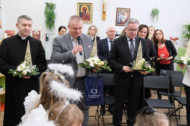 Okoliczność zbliżających się Świąt Bożego Narodzenia jest okazją do wyrażania świątecznych życzeń i słów pamięci oraz wdzięczności. W dniu 19. grudnia odbyło się w naszej Ochronce przemiłe spotkanie z zaproszonymi Gośćmi, wśród których byli między innymi przedstawiciele władz lokalnych z Panem Burmistrzem Kazimierzem Moskalem na czele, Podkarpacka Kurator Oświaty – pani Dorota Nowak-Maluchnik, Proboszcz Parafii Przemienienia Pańskiego w Ropczycach ks. Ryszard Polański, Przełożona Prowincji Tarnowskiej – s. Urszula Kowal, przedstawiciele Rady Rodziców oraz inni zacni Goście.