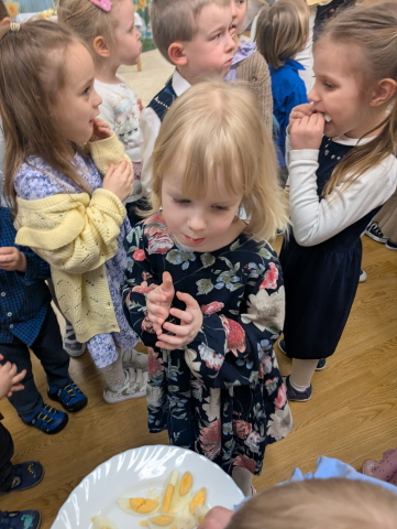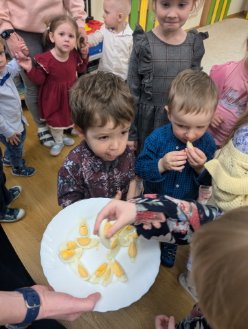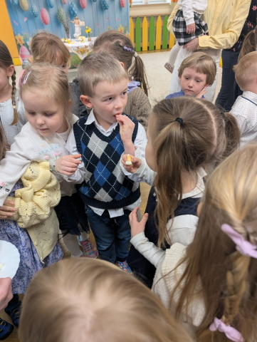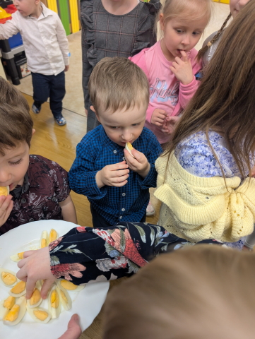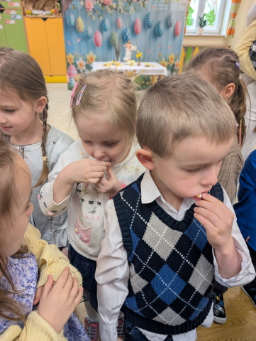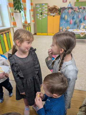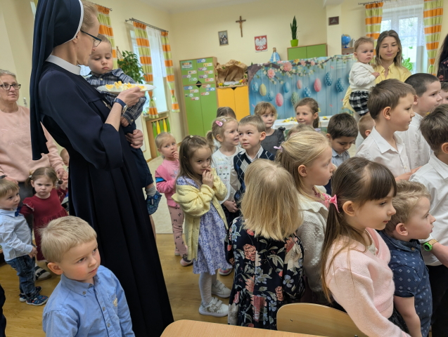 W naszej Ochronce z radością rozpoczęliśmy przygotowania do zbliżających się Świąt Wielkanocnych. Z tej okazji odbyło się uroczyste spotkanie, podczas którego nie zabrakło wspólnego świętowania, życzeń oraz pięknych chwil spędzonych razem. Na początku dzieci zaprezentowały krótkie życzenia oraz piosenki dla Siostry Małgorzaty – naszej katechetki oraz dla księdza Jakuba Piekielnego, którzy towarzyszyli nam podczas tego wyjątkowego dnia. Był to bardzo wzruszający moment, pełen uśmiechów i dziecięcej radości. Następnie wspólnie złożyliśmy sobie świąteczne życzenia, dzieląc się jajkiem – symbolem życia i odrodzenia. Po tej pięknej części wszyscy zasiedliśmy do uroczystego obiadu, podczas którego nie mogło zabraknąć tradycyjnego wielkanocnego żurku. Był to dzień pełen radości, serdeczności i wspólnoty, który na długo pozostanie w naszej pamięci. Takie chwile uczą dzieci tradycji, wzajemnej życzliwości oraz dzielenia się dobrem z innymi.